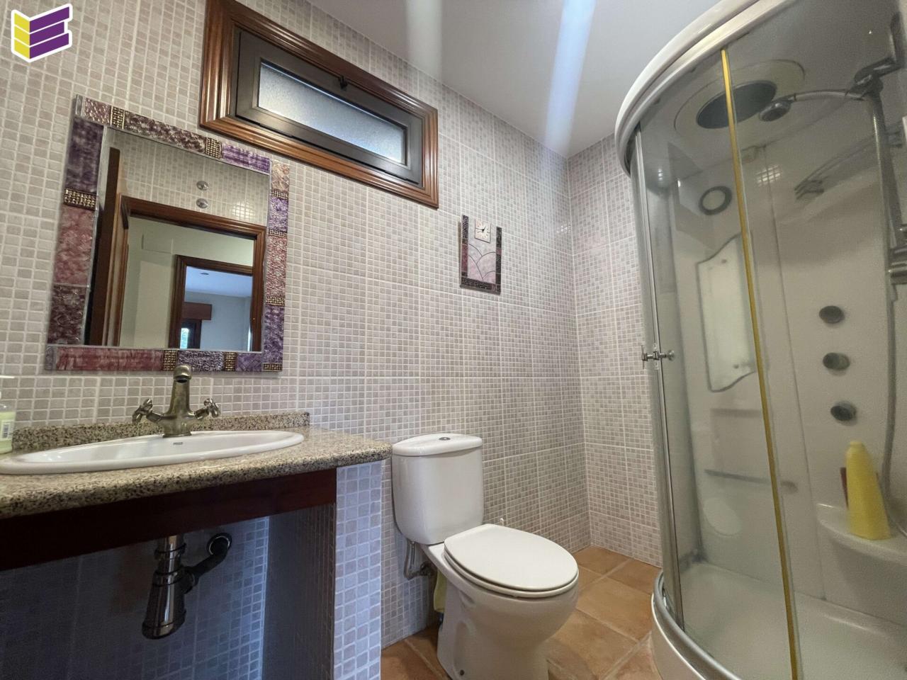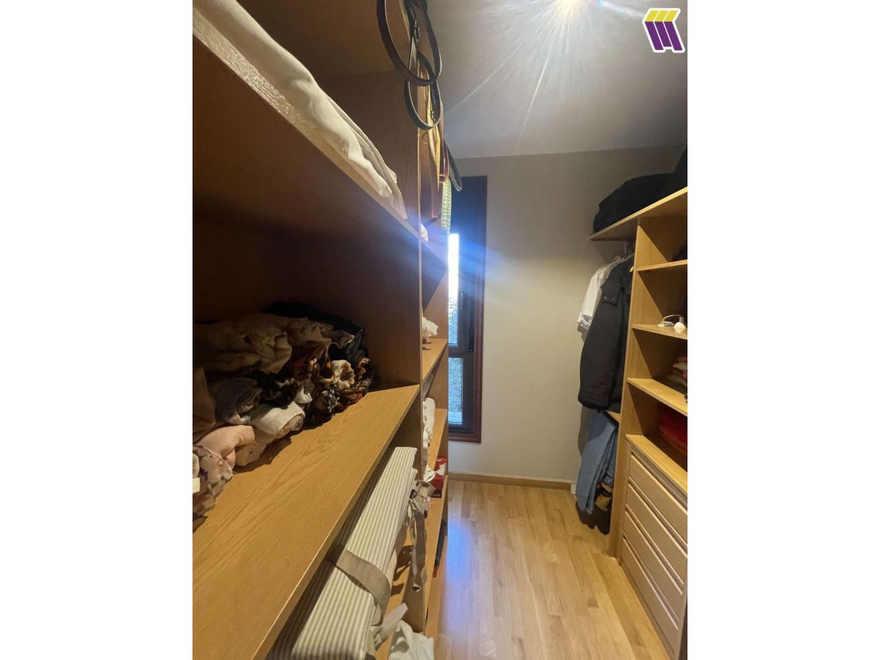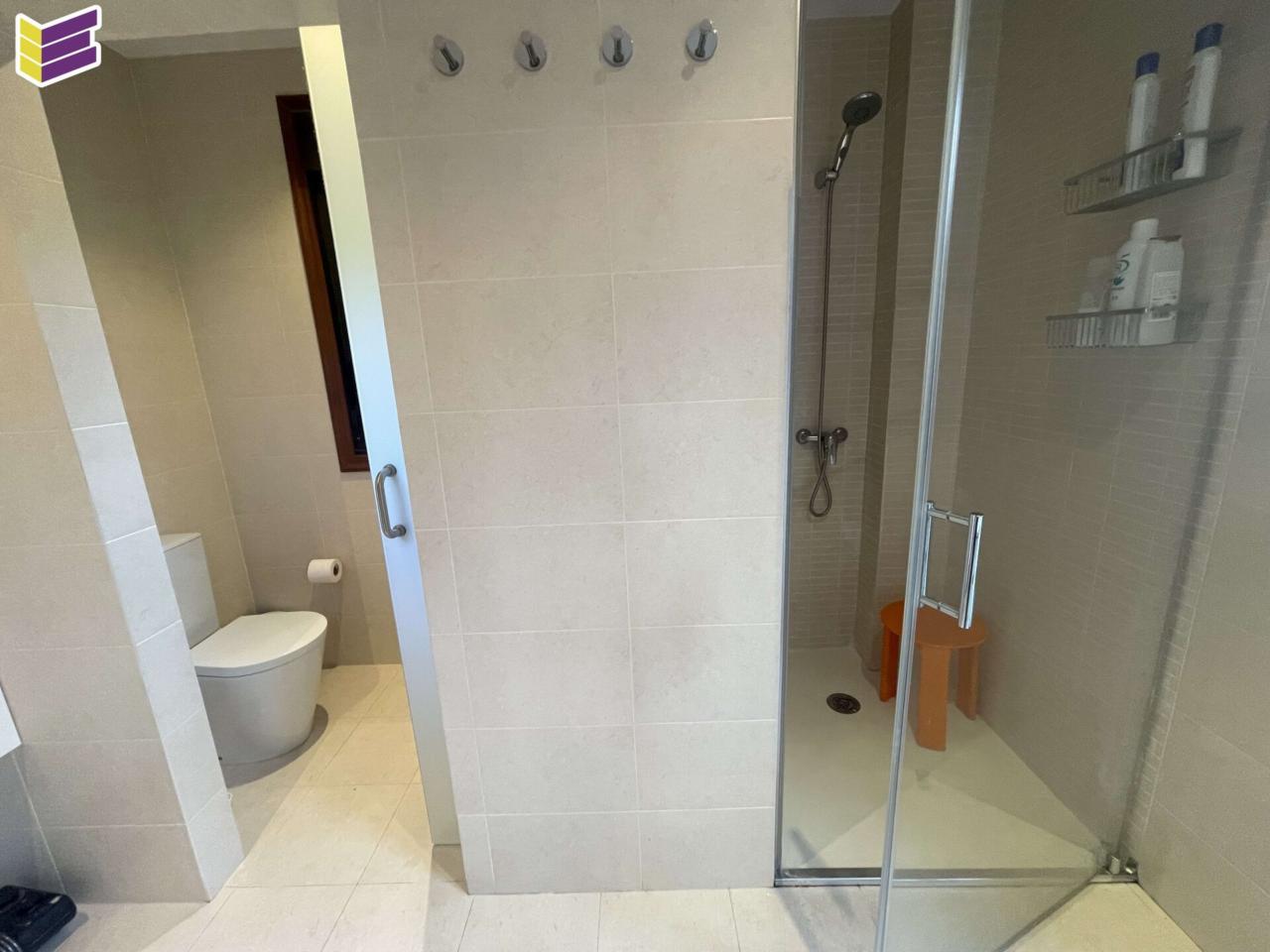 Baño con plato de ducha y mampara de cristal. Vestidor con ventana.