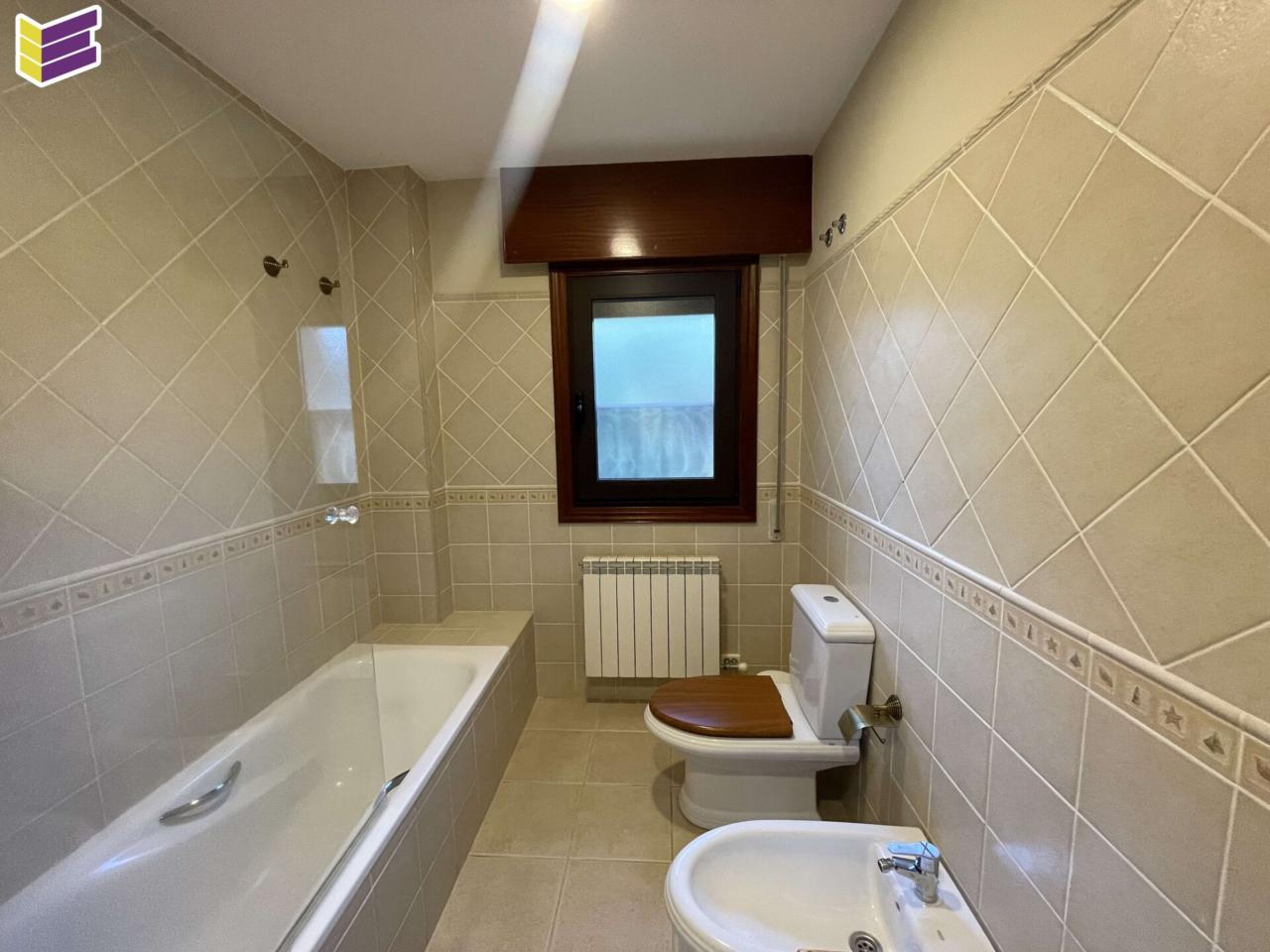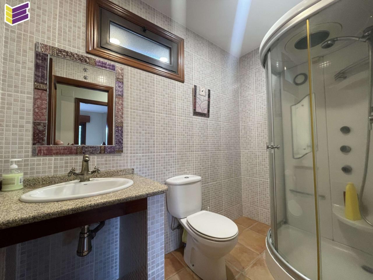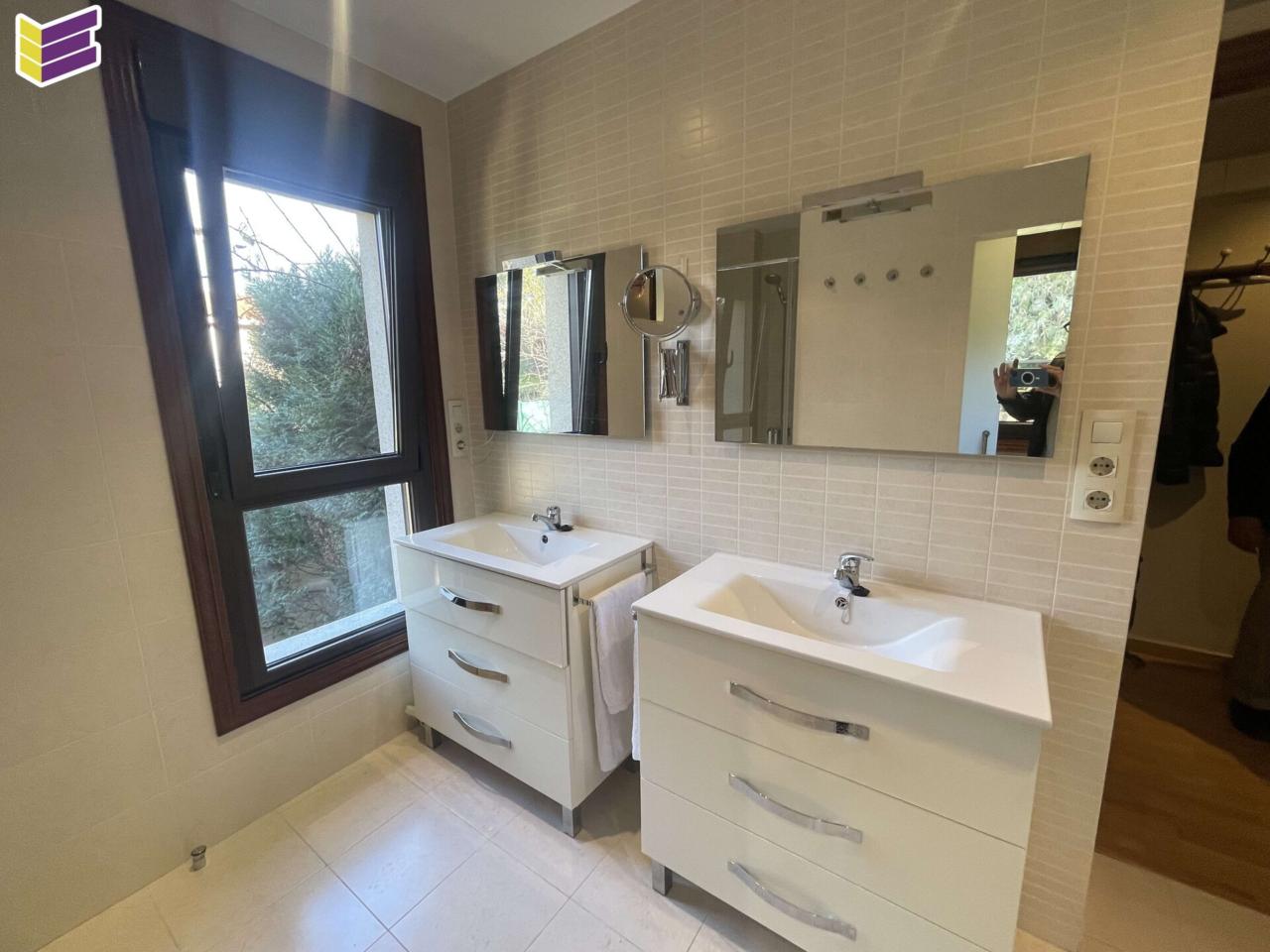 ·Baño principal, con doble lavabo, bañera con mampara y armario empotrado forrado y dividido.