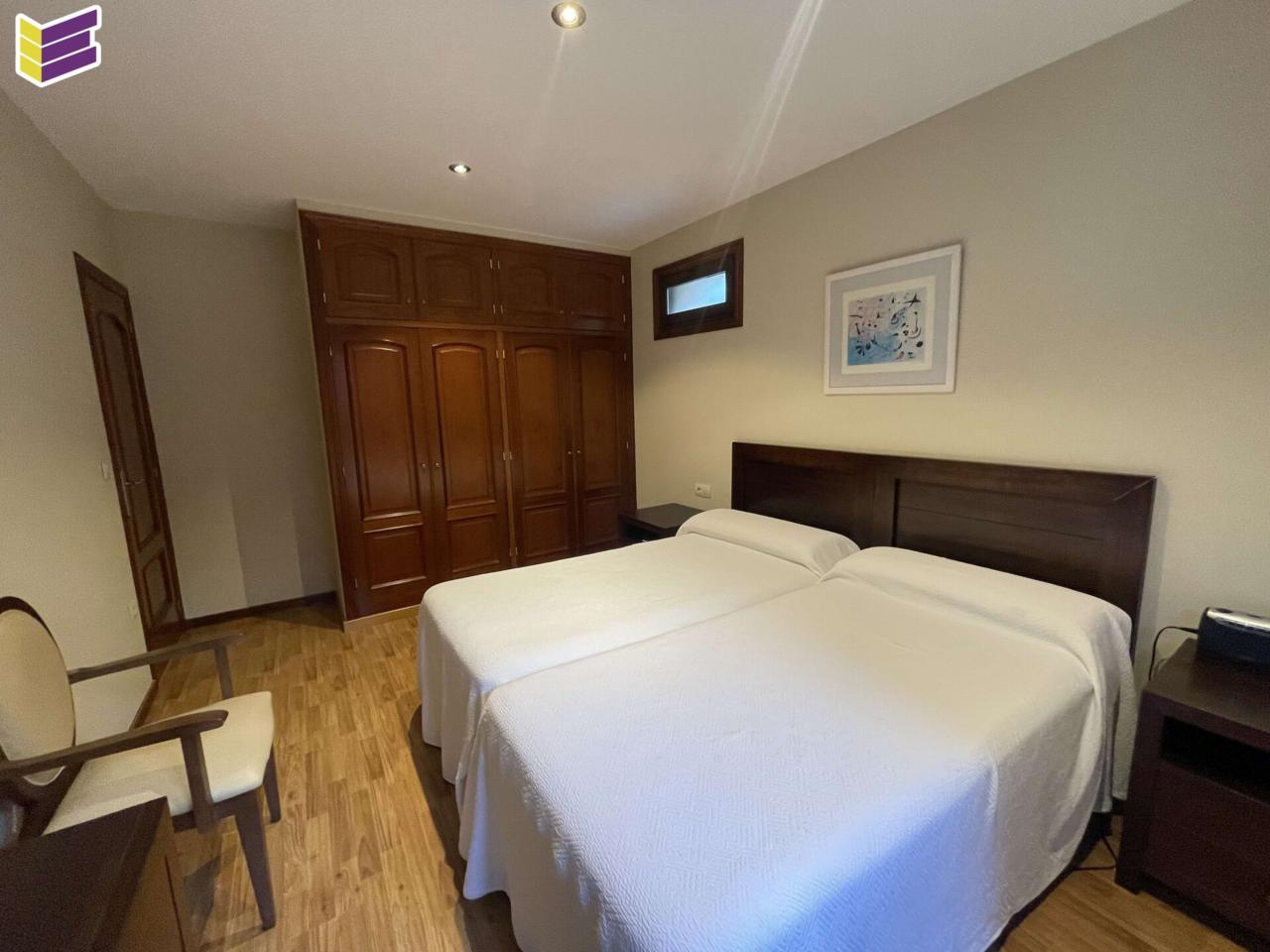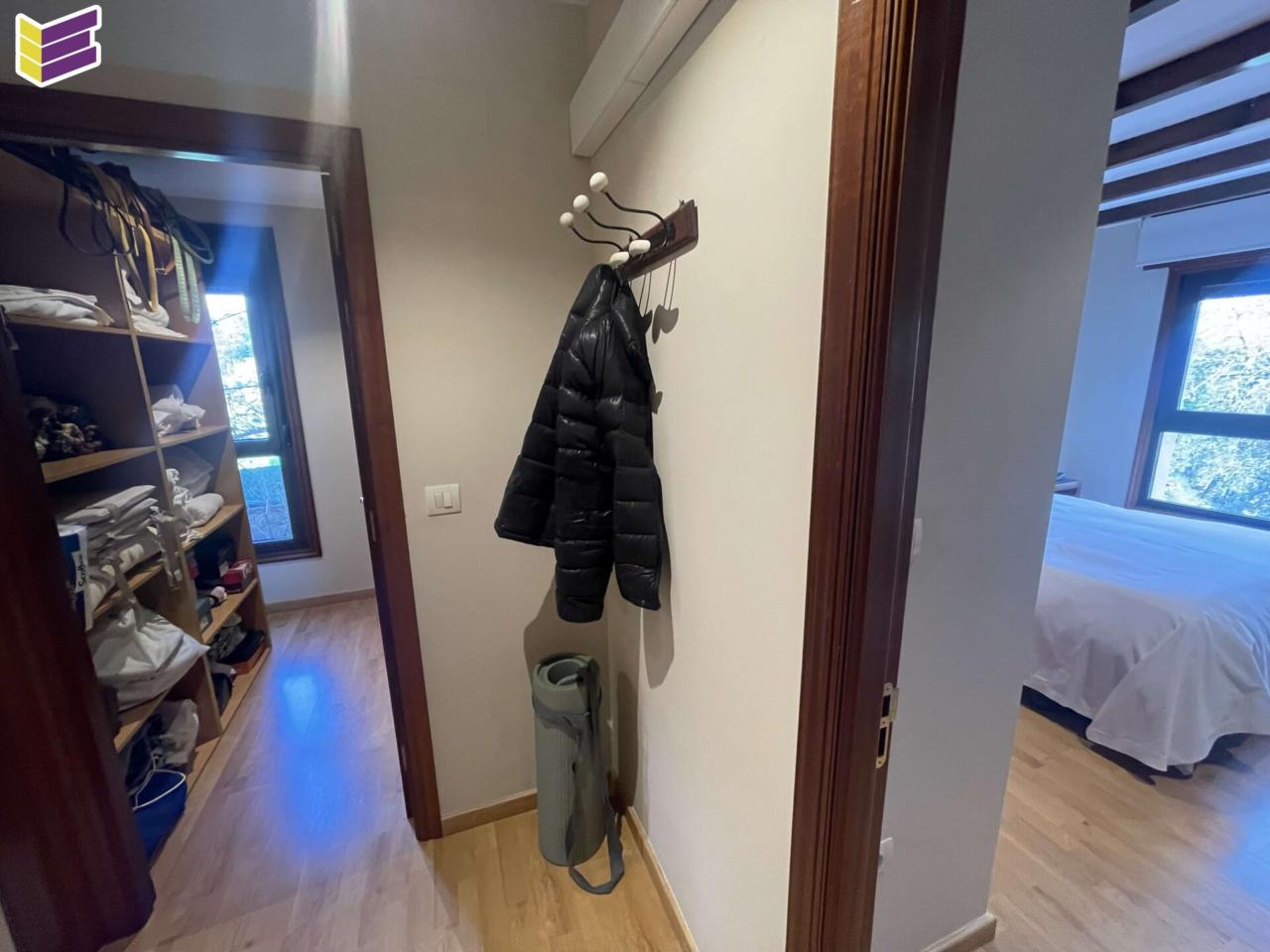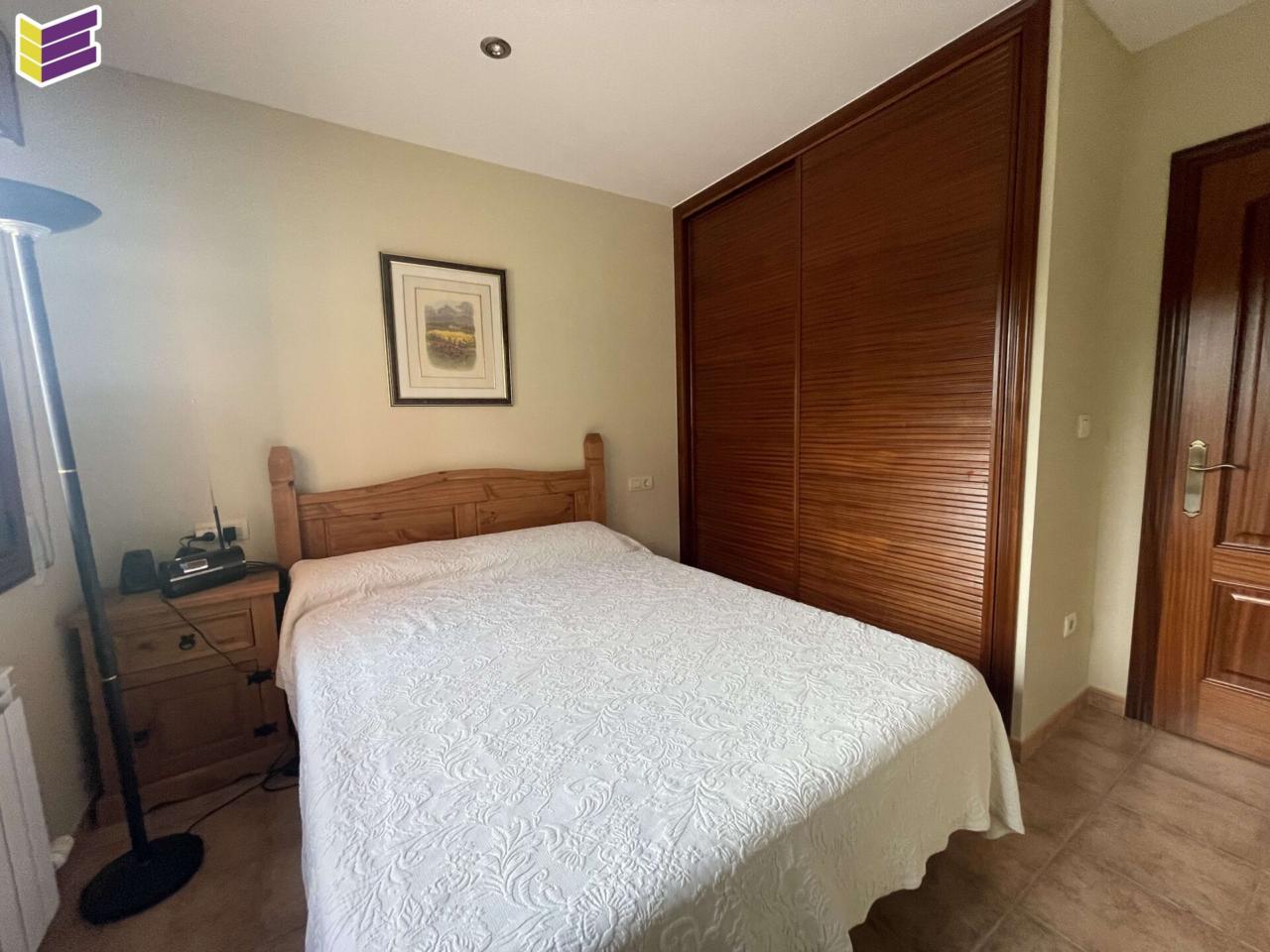 ·Dormitorio, con armarios empotrados, forrados y divididos, suelos de tarima flotante y vigas de madera en el techo.
