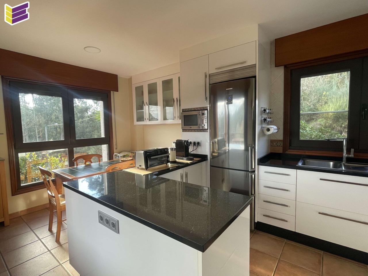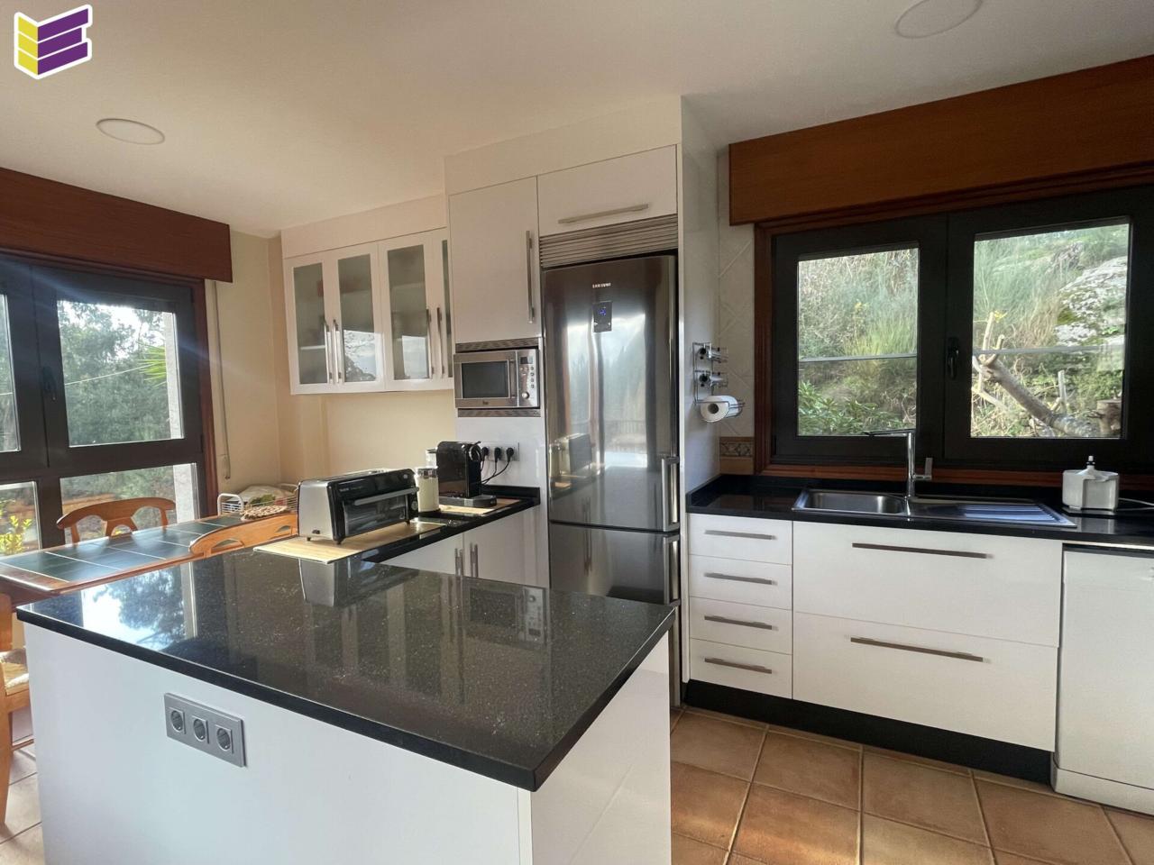 ·Cocina totalmente amueblada y equipada, accesible al porche a través de ventanal de puertas correderas, ideal para comidas en verano.