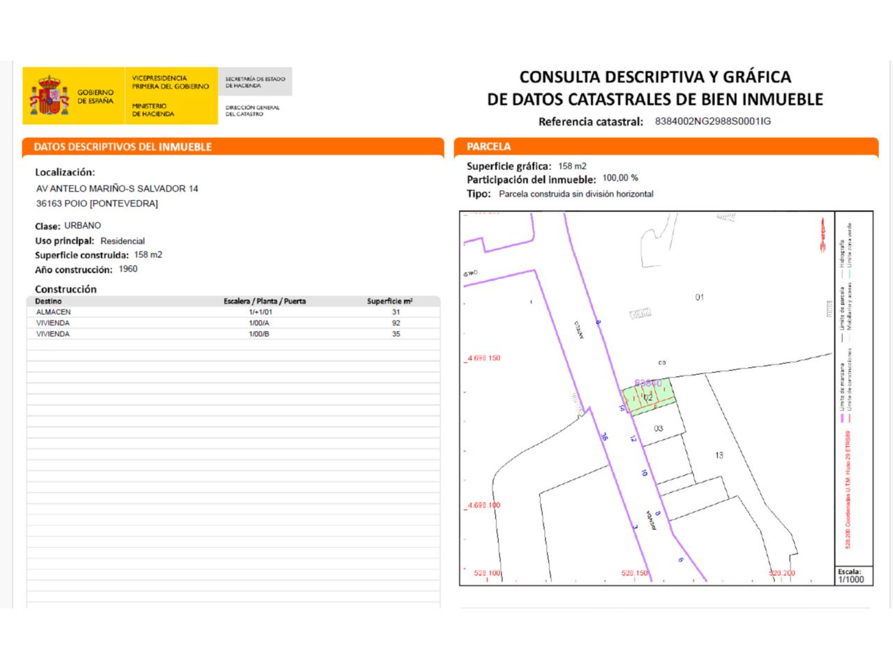 Excelente oportunidad de adquirir en propiedad este suelo urbano consolidado con edificación a demoler y referencia catastral 8384002NG2988S0001IG, cuyo uso principal es residencial plurifamiliar ubicado en la localidad de Poio, provincia de Pontevedra. Forma parte del Planeamiento General de Ordenación Municipal de la localidad, con una edificabilidad de 815m2 aproximadamente para un proyecto estimado de 6 viviendas con máximo 4 plantas y una planta para plazas de garajes y trasteros. Una de sus principales ventajas corresponde a su fácil acceso a la vía PO-310, que permite atravesar el Ponte da Barca para entrar en Pontevedra. El terreno se encuentra en una zona tranquila, rodeada por viviendas residenciales de similares características y goza de todos los servicios públicos, tiendas, alimentación, establecimientos de ocio, entretenimiento y restauración entre otros. Poio es una encantadora localidad costera donde su entorno combina la belleza natural con un valioso patrimonio histórico y cultural, y ofrece una variada gastronomía y actividades al aire libre para disfrutar. ¿Quieres más información sobre este suelo? No dudes en ponerte en contacto con nosotros.