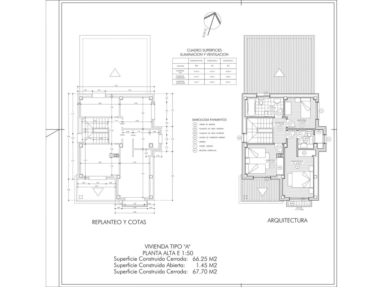 La superficie total construida de esta planta es de 66,25 m².